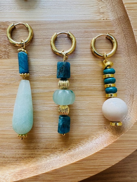 L’équilibre parfait entre le bleu profond de l’apatite et la douceur de l’amazonite crée un bijou à la fois raffiné et vibrant, idéal pour illuminer tes tenues du quotidien comme celles des grandes occasions.